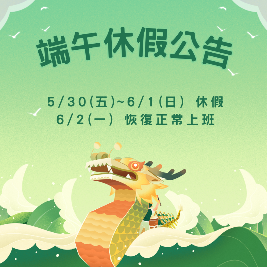 休假期間若有任何問題,可留言至LINE@官方帳號,俟 6/2 (一)上班時將優先處理。